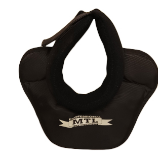 Justerbart halsskydd med kardborreband för optimal passform och komfort.